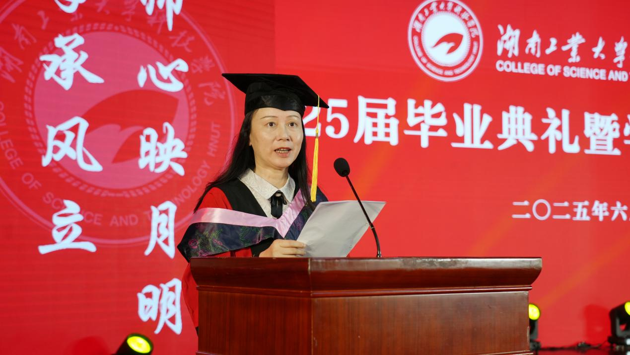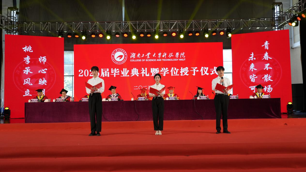 湖南工业大学副校长龙永红主持典礼,典礼在雄壮的国歌声中拉开序幕。校长蒋昌波在致辞中代表学校对全体毕业生表达了美好祝福。他希望同学们:一是坚定理想信念,厚植爱国情怀,用青春的能动力和创造力激荡起民族复兴的澎湃春潮;二是永葆创新精神,勇攀科学高峰,为国家科技进步和社会发展贡献青年力量;三是磨砺坚韧品格,创造丰富人生,在完善自我、服务人民、奉献社会的实践中创造有意义的人生。