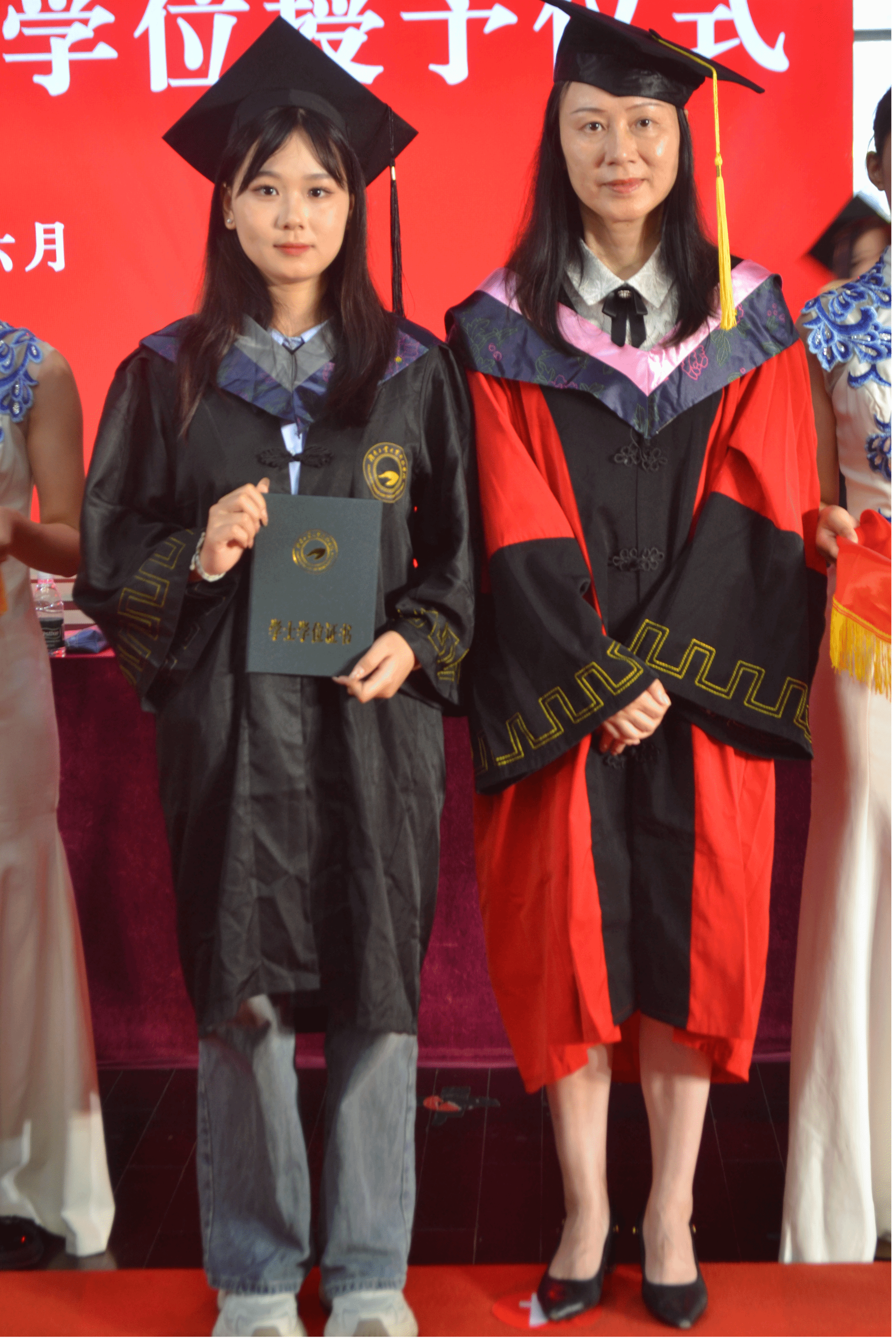 主席台领导为优秀毕业生代表颁奖