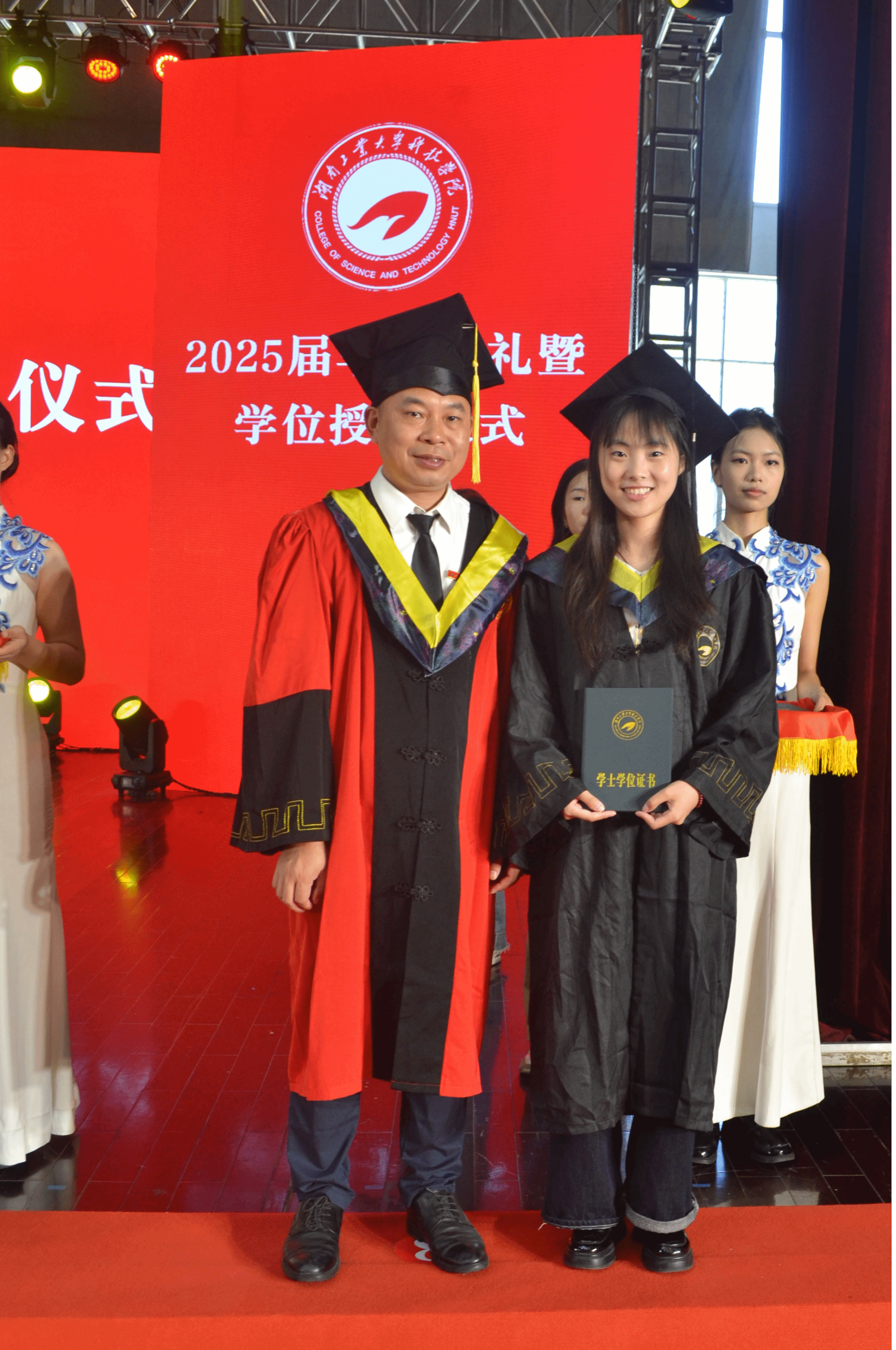 毕业典礼结束后,主席台领导为毕业生授予学位、正冠拨穗。毕业典礼暨学位授予仪式在一张张充满幸福的合影中圆满落下帷幕。2025届毕业生满载着母校、师长与亲人的期望,奋楫扬帆启新程,挺膺担当再出发,用青春拥抱砥砺人生,以奋斗书写时代华章。